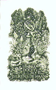 Si noti, in questo come nell'ex libris successivo, che l'artista ha nascosto l'iniziale del suo cognome nel decoro floreale che attornia l'orologio solare.