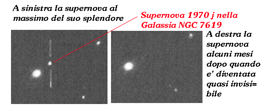 Nelle galassie esterne si sono osservate con più frequenza le esplosioni di supernova in quanto raggiungono una luminosità apparente tale da permettere non solo di osservarle in oggetti così lontani ma anche di distinguerle all'interno della galassia stessa. In questo modo si è potuto studiarne le caratteristiche osservando che ve ne sono di due tipi: