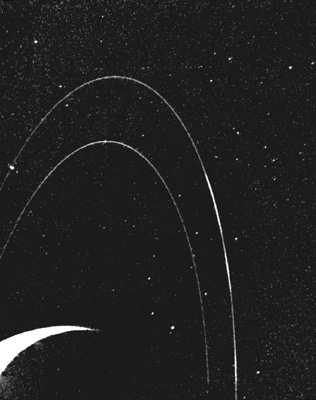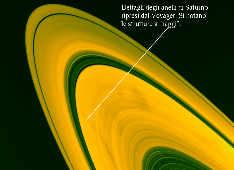 di taglio degli anelli di Saturno con due dei suoi satelliti