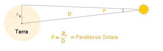 Il calcolo della parallasse Solare utilizza come base la distanza media dell'orbita che la Terra descrive attorno al Sole essa risulta di: